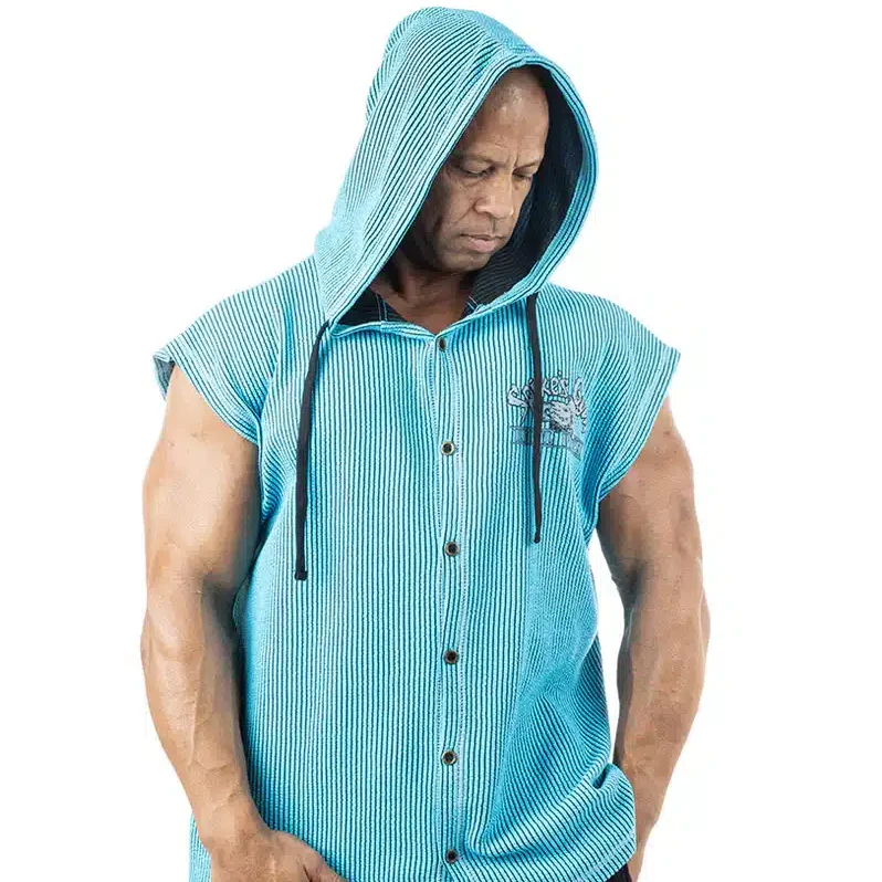 La felpa con cappuccio Spikes Gym Sleeveless è pura essenza del bodybuilding old-school: senza compromessi, accattivante e funzionale. Il design senza maniche valorizza al massimo spalle e braccia, mentre il caratteristico tessuto Boston con colori neon regala un’autentica atmosfera anni ’90. L’abbottonatura frontale e il cappuccio completano il look: perfetto per la palestra, la strada o un allenamento estivo.