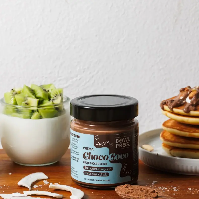 La Crema ChocoCoco Bowlpros unisce la dolcezza naturale del cocco all’intensità del cacao, con un pizzico di sale che ne esalta il sapore e la rende irresistibilmente equilibrata.