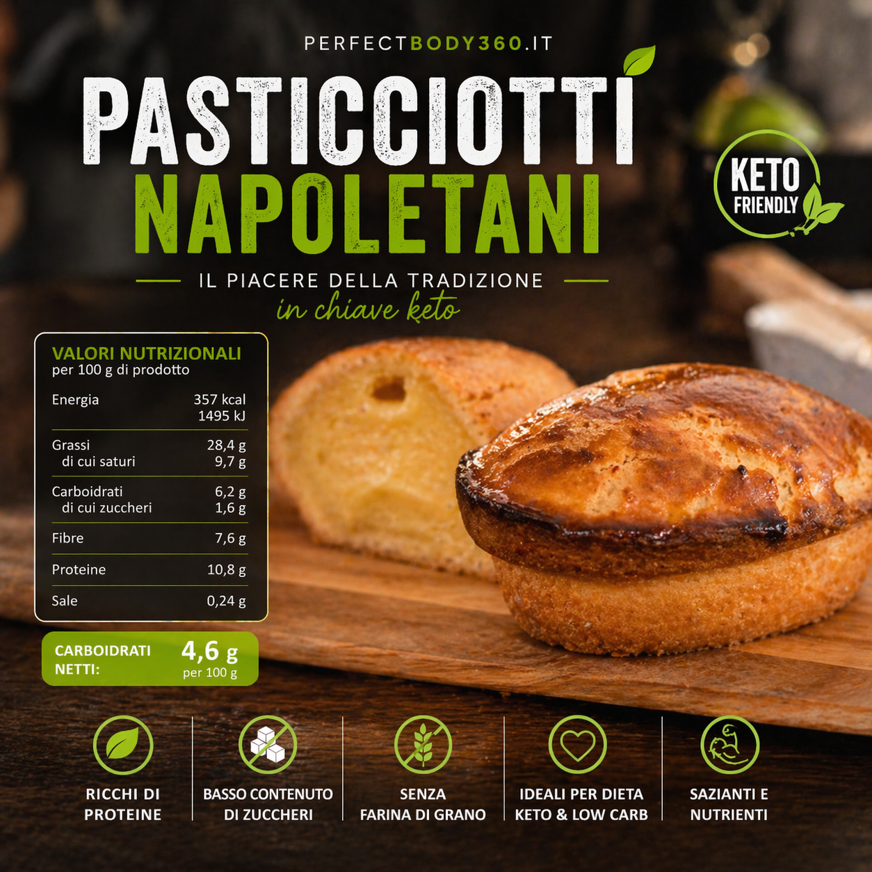 Dal produttore dei Best Seller Ketosweet (Crostatine, Sfogliatine Napoletane e Sbriciolate): i Mini Pasticciotti Napoletani Low Carb di KetoSweet sono il dolce perfetto per chi vuole concedersi un momento di piacere senza rinunciare alla linea. Ispirati alla ricetta classica della pasticceria partenopea, sono stati riformulati per adattarsi perfettamente a uno stile di vita keto, fit e low carb.