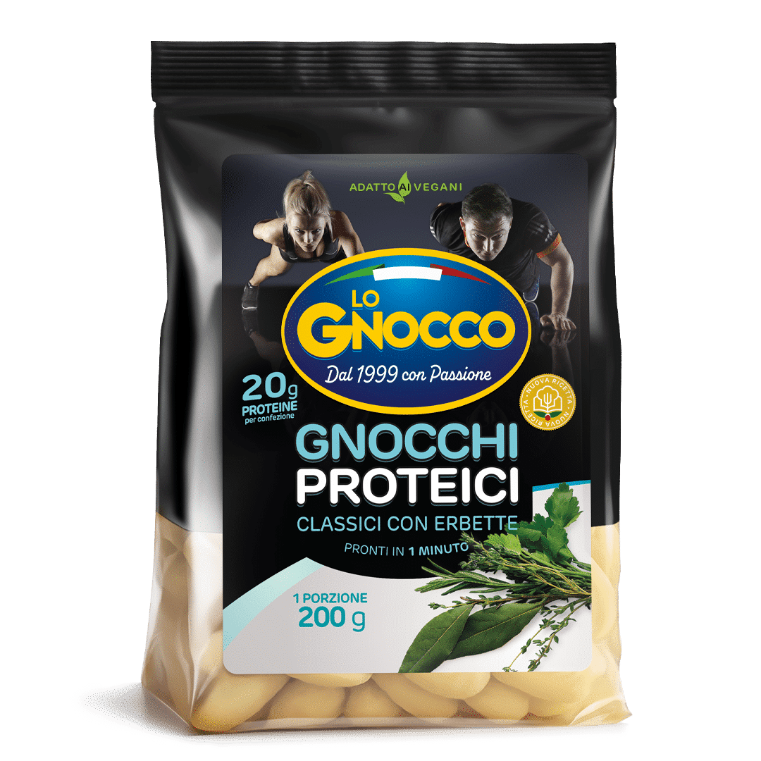 Gli gnocchi proteici alle erbette de Lo Gnocco uniscono morbidezza e leggerezza grazie a un impasto arricchito con rosmarino, salvia, prezzemolo e timo. Ogni gnocco offre un profumo naturale e un apporto bilanciato di proteine, ideale per pasti sani e veloci.