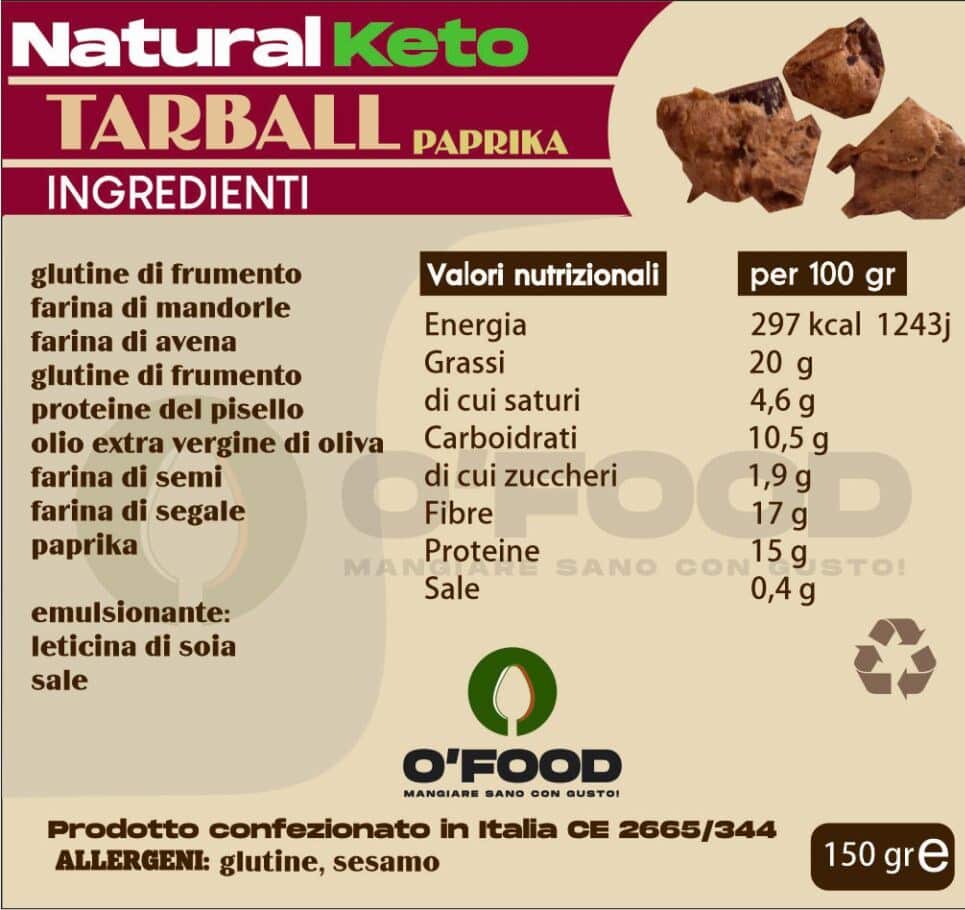 4 recensioni per Tarball 100% Keto 150gr | O’Food