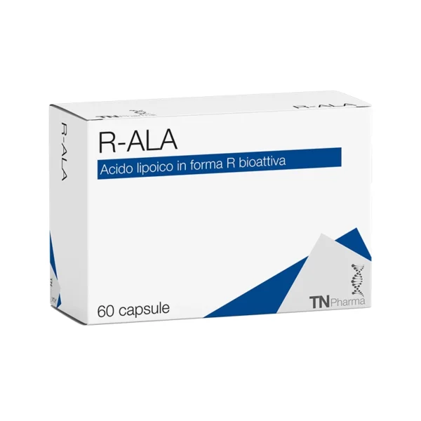 R-ALA di Tn Pharma è un integratore di Acido lipoico in forma R bioattiva: si tratta di un acido grasso bioattivo non essenziale (può dunque essere sintetizzato in autonomia dall’organismo) che ha importanti proprietà antiossidanti, promuove il metabolismo energetico e stimola il metabolismo del glucosio.