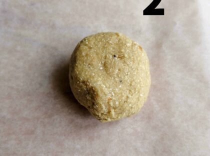 1-Impastare tutti gli ingredienti per le 2 basi biscotto fino ad avere una pallina omogenea. (foto 1 -2 )