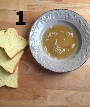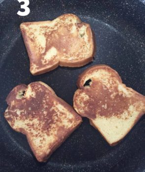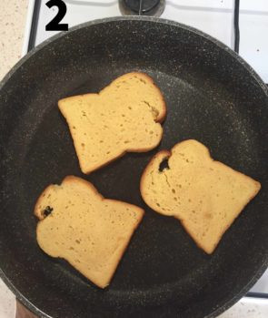 - Passare le fette di pane nell’albume dolcificato/aromatizzato in modo tale che lo assorbano bene;