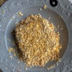 4-Togliere il coppapasta e passare il patazzino ottenuto prima nell’albume e poi nei fiocchi di avena. (FOTO 4, 5, 6 e 7)